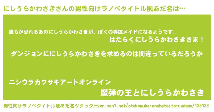 | ヒーロー風カッコイイあだ名 | 『暗黒騎士ニシ』『ネオニシウラカワサキ』 |