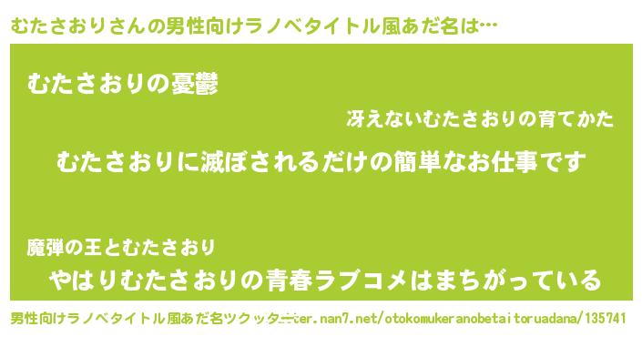 | 胡散臭い通販商品みたいなあだ名 | 『億万長者になれる霊験あらたかなお札…その名も「むたさおり」』 |