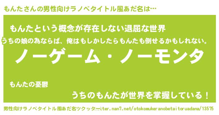 | 女子向けラノベタイトル風あだ名 | 『死神もんたの再婚』『もんたの契約王妃』 |