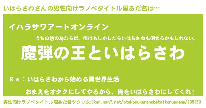 | ヒーロー風カッコイイあだ名 | 『仮面イハダー』『スーパーイハラサワ』 |
