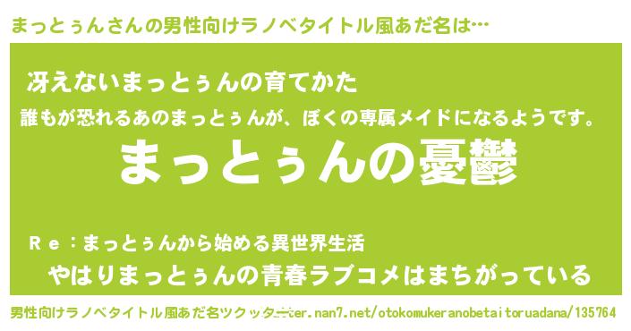 | 胡散臭い通販商品みたいなあだ名 | 『必ず成功する霊験あらたかなお札…その名も「まっとぅん」』 |