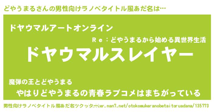 | 胡散臭い通販商品みたいなあだ名 | 『必ず成功するブレスレット…その名も「どやうまる」』 |