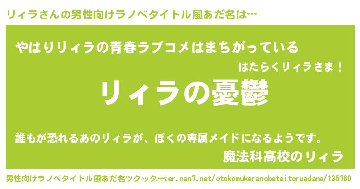 | 胡散臭い通販商品みたいなあだ名 | 『必ず成功する水晶球…その名も「リィラ」』 |