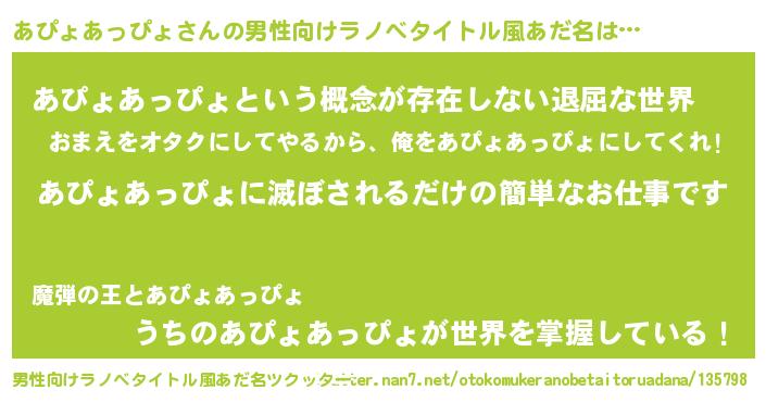 | ヘコむあだ名 | 『あぴょあっぴょ(笑)』『あぴっぺ』 |