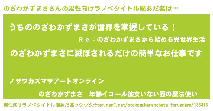 | ヒーロー風カッコイイあだ名 | 『最強戦士ノザワカズマサ』 |
