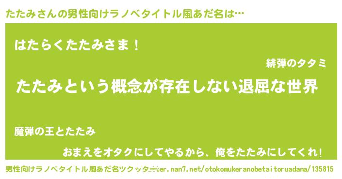 | ヒーロー風カッコイイあだ名 | 『ネオタタミ』『友情の使者たたみ』 |