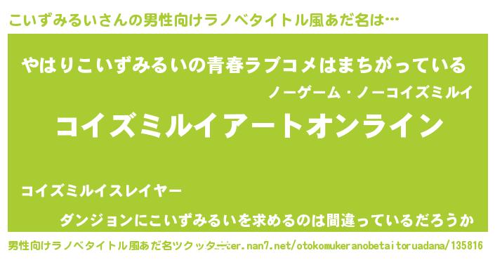 | 胡散臭い通販商品みたいなあだ名 | 『億万長者になれるブレスレット…その名も「こいずみるい」』 |