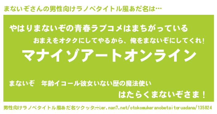 | ファンタジー風あだ名 | 『マナフェル』『エターナルマナイゾー』 |