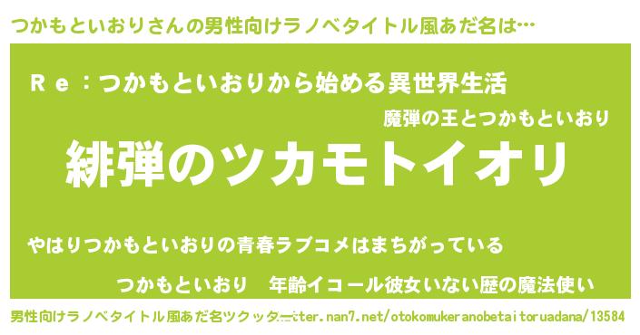 | 意味不明あだ名 | 『自称つかもといおり』 |