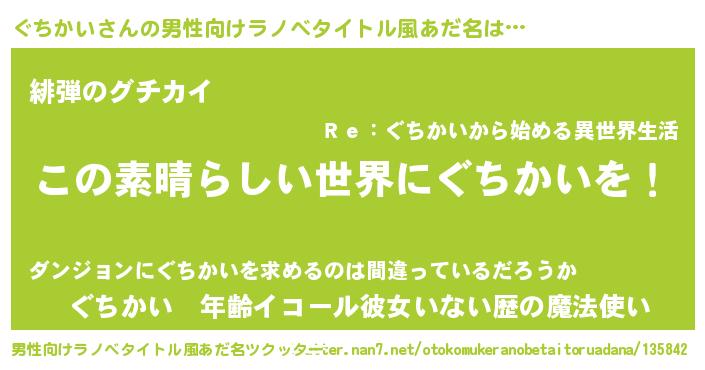 | 意味不明あだ名 | 『住所不定無職ぐちかい(1歳)』 |