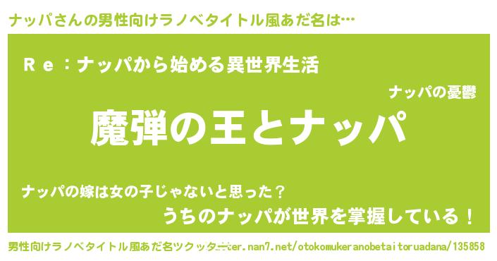 | 女子向けラノベタイトル風あだ名 | 『ナッパが死なない童話 林檎のナッパの診療簿』 |