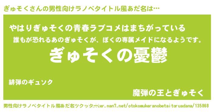 | 女子向けラノベタイトル風あだ名 | 『(仮)ぎゅそくのやんごとなき事情』 |