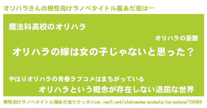| ヒーロー風カッコイイあだ名 | 『幻影騎士オリ』『超時空戦士オリハラ』 |