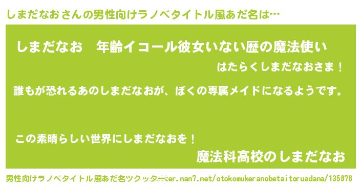 | 女子向けラノベタイトル風あだ名 | 『異世界でカフェしまだなおを開店しました。』 |