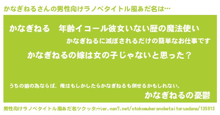 | 意味不明あだ名 | 『とにかく怪しいかなぎねる』 |
