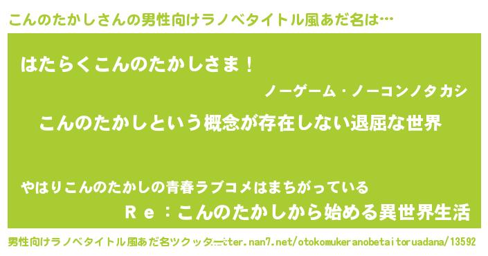 | 意味不明あだ名 | 『永久保存こんのたかし』 |