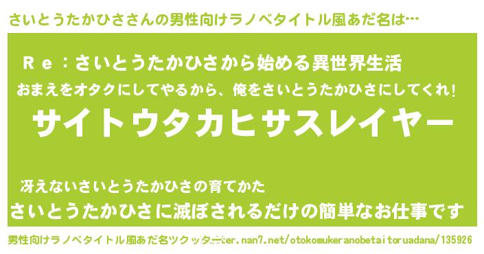 | 胡散臭い通販商品みたいなあだ名 | 『ガンによく効く高麗人参…その名も「さいとうたかひさ」』 |