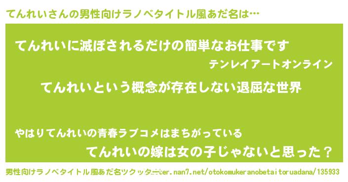 | 胡散臭い通販商品みたいなあだ名 | 『絶対に幸福をもたらす健康食品…その名も「てんれい」』 |