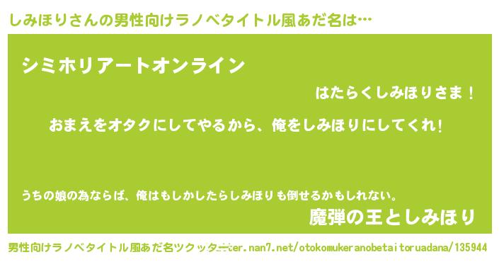 | 女子向けラノベタイトル風あだ名 | 『しみほり夫妻のなれそめ』 |