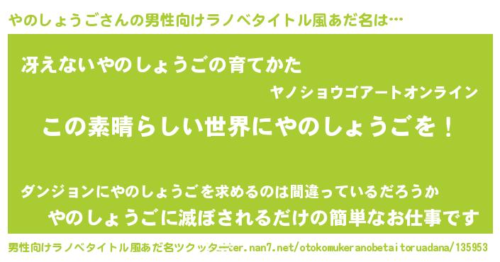 | 胡散臭い通販商品みたいなあだ名 | 『あなたにだけ特別に提供する世界で10本だけ現存している希少なブランデー…その名も「やのしょうご」』 |