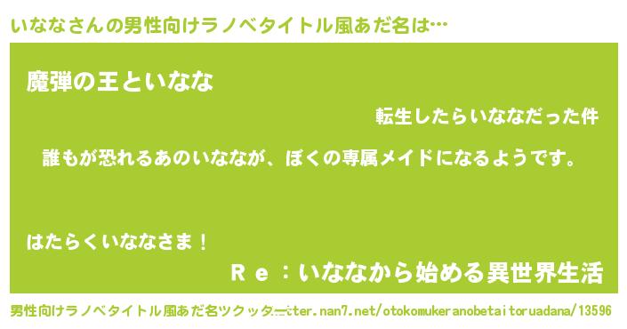 | 女子向けラノベタイトル風あだ名 | 『いななの契約王妃』 |