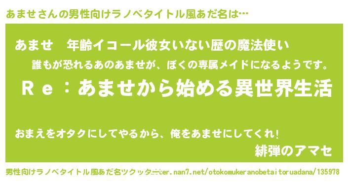 | 女子向けラノベタイトル風あだ名 | 『闇のあませ』『あませの玉の輿計画!』 |