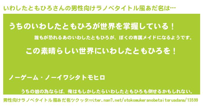| 意味不明あだ名 | 『住所不定無職いわしたともひろ(40歳)』 |
