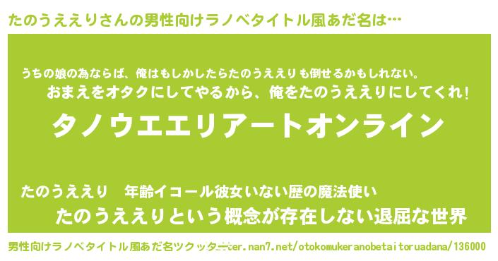 | 女子向けラノベタイトル風あだ名 | 『たのうええり姫と円卓の騎士』 |