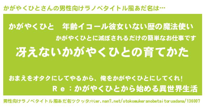 かがやくひとさんの男性向けラノベタイトル風あだ名をツクッター!