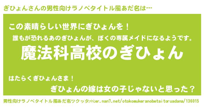 | 女子向けラノベタイトル風あだ名 | 『ぎひょんアンティーク』 |