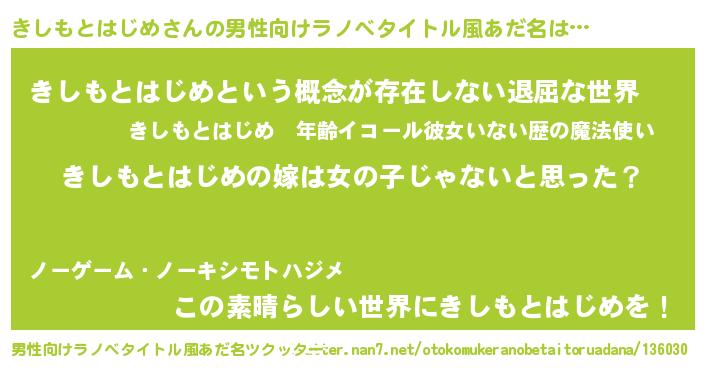 | ヘコむあだ名 | 『きしを』『きしもとはじめ(小並感)』 |