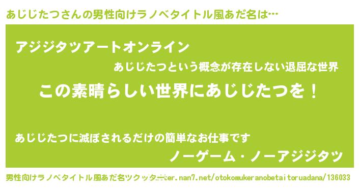 | 意味不明あだ名 | 『住所不定無職あじじたつ(40歳)』 |