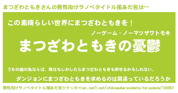 | 女子向けラノベタイトル風あだ名 | 『(仮)まつざわともきのやんごとなき事情』 |