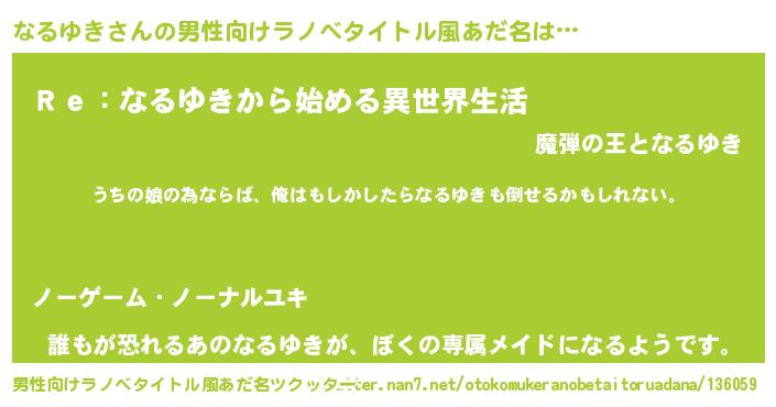 | 女子向けラノベタイトル風あだ名 | 『なるゆきの婚約者』『闇のなるゆき』 |
