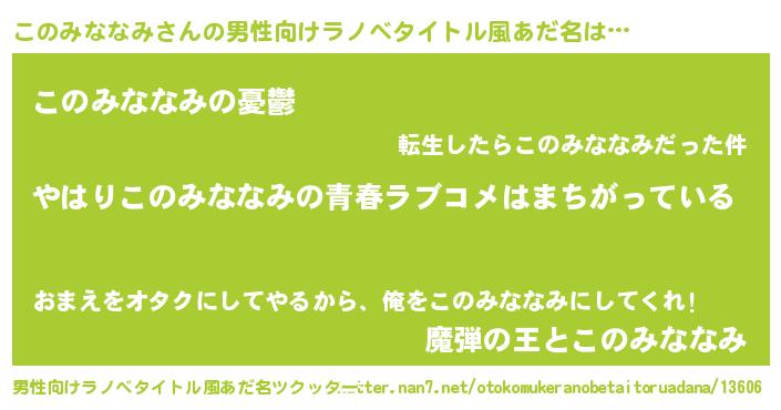 | 胡散臭い通販商品みたいなあだ名 | 『幸せが訪れる高級そうな絵画…その名も「このみななみ」』 |