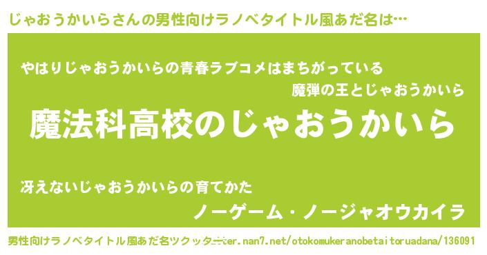| 伝説のあだ名 | 『秘められし陰陽師じゃおうかいら』 |