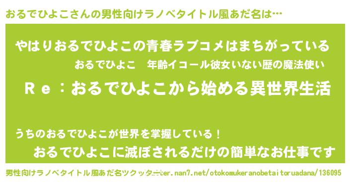 | 意味不明あだ名 | 『自称おるでひよこ』 |