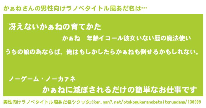| 胡散臭い通販商品みたいなあだ名 | 『世界が平和になる高級そうな絵画…その名も「かぁね」』 |