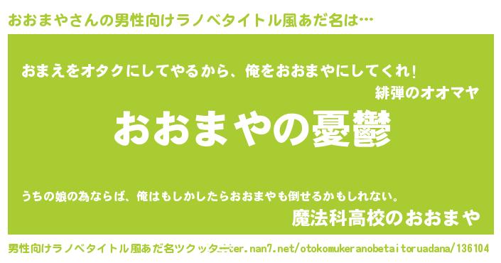 | 女子向けラノベタイトル風あだ名 | 『おおまや姫と円卓の騎士』 |
