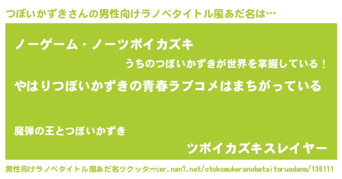 | ファンタジー風あだ名 | 『エターナルツボイカズキー』 |
