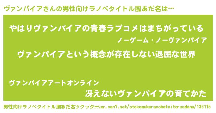 | 意味不明あだ名 | 『永久保存ヴァンパイア』 |