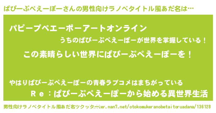 | 胡散臭い通販商品みたいなあだ名 | 『あなたにだけ特別に提供する限定10本のレアな日本酒…その名も「ぱぴーぷぺえーぽー」』 |