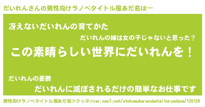 | 女子向けラノベタイトル風あだ名 | 『乙女ゲームの破滅フラグしかない悪役だいれんに転生してしまった…』 |