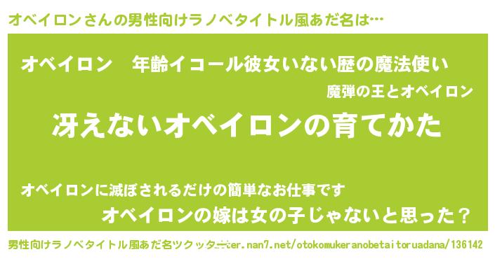 | 女子向けラノベタイトル風あだ名 | 『男装オベイロンの憂鬱な任務』 |
