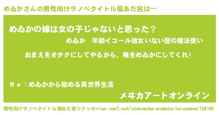 | 女子向けラノベタイトル風あだ名 | 『めゐか恋絵巻』『めゐか様がみてる』 |