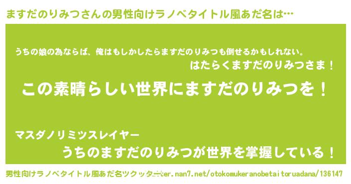 | 意味不明あだ名 | 『住所不定無職ますだのりみつ(98歳)』 |