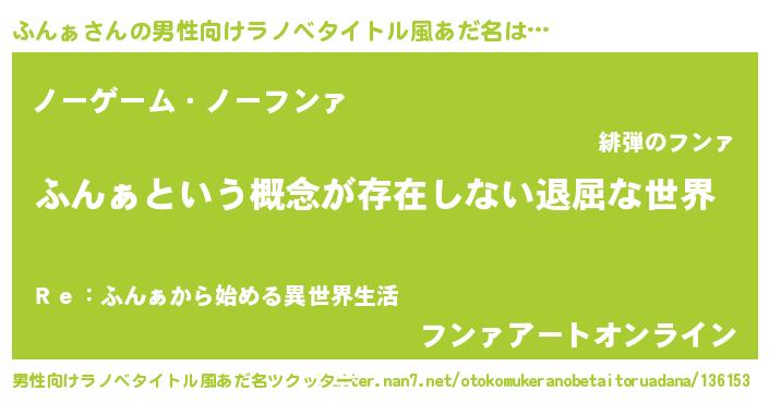 | 女子向けラノベタイトル風あだ名 | 『ふんぁの契約王妃』『死神ふんぁの再婚』 |