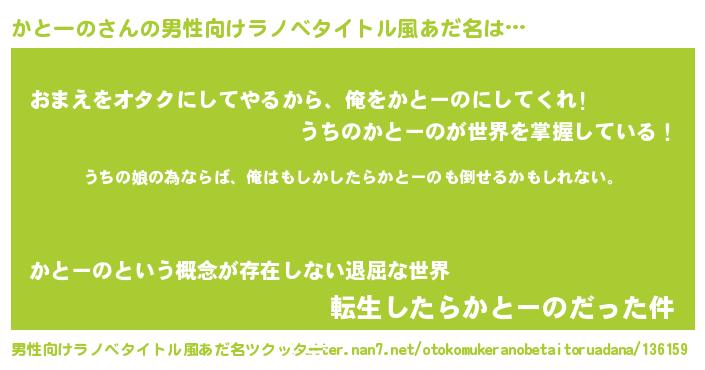 | ヘコむあだ名 | 『なまこ酢』『かとーの(苦笑)』 |