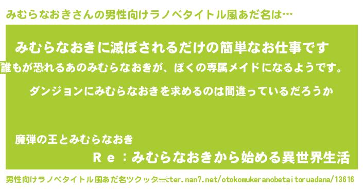 | 女子向けラノベタイトル風あだ名 | 『みむらなおきは平凡を望む』 |