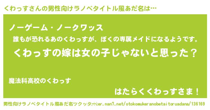 | ヘコむあだ名 | 『くわっぺ』『くわっす(小並感)』 |